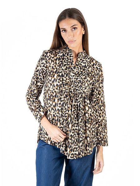– czysta bawełna- kołnierz: stójka- zapięcie: skrócona listwa guzikowa- dolny brzeg: zaokrąglony- krój: prosty- wzór: panterka