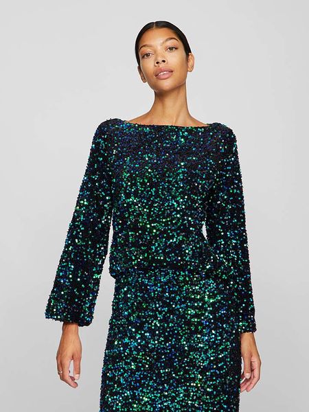 – dekolt: łódka- krój: prosty- detale: cekiny- wzór: moro