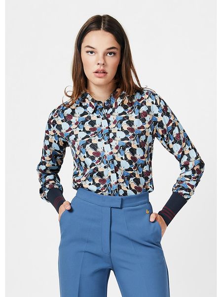 – kołnierz: kent- zapięcie: listwa guzikowa- rękaw: bufiasty- krój: wąski- wzór: kwiatowy