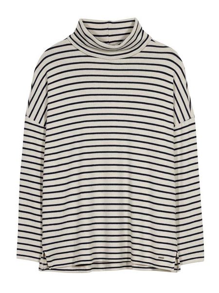 – kołnierz: stójka- dolny brzeg: z rozcięciem- krój: luźny- wzór: paski