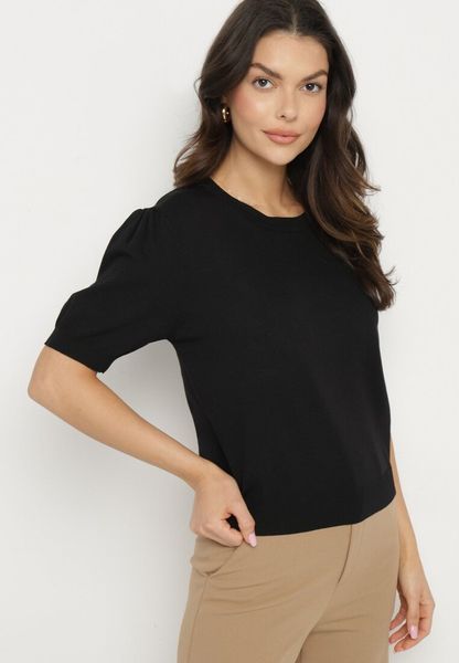 Czarna Bluzka Sweterkowa z Lekko Bufiastymi Rękawami z Wiskozą Adeva