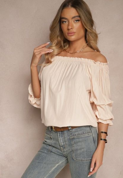 Jasnoróżowa Bluzka z Wiskozą Ozdobiona Falbanami Melzivia