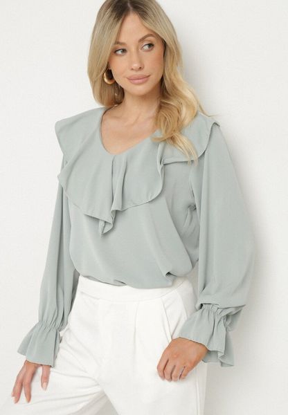 Jasnozielona Bluzka z Ozdobną Falbanką Tanalissea