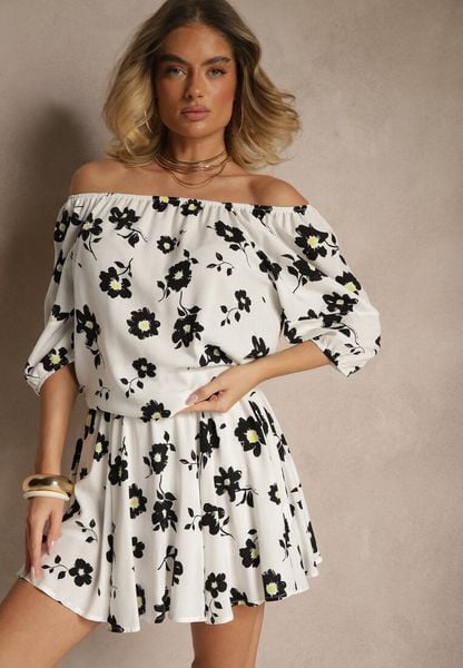 Biała Bluzka w Stylu Hiszpanki Ozdobiona Kwiatami Turisca