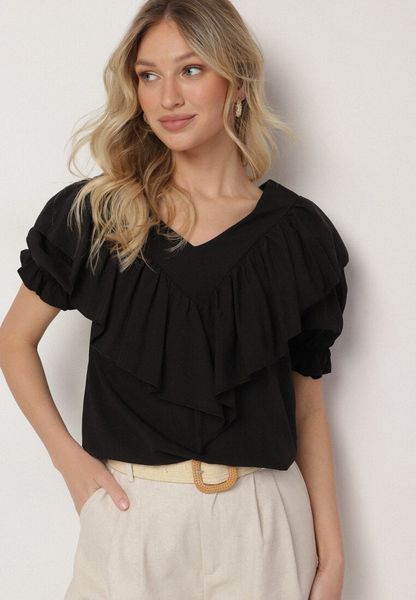 Czarna Bluzka z Wiskozą i Falbankami Fadevia