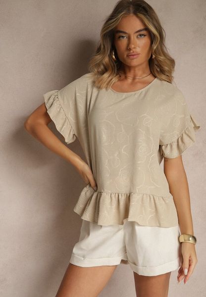 Beżowa Bluzka Oversize Ozdobiona Falbanami Liriele