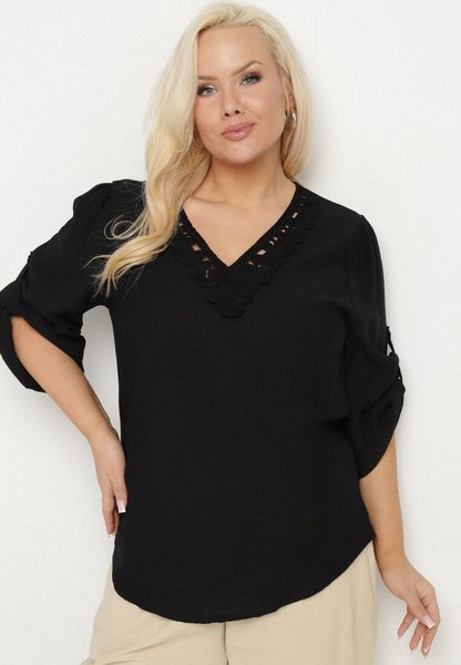 Czarna Bluzka z Bawełną i Ozdobnym Haftem Edirilita