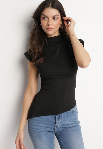 Czarna Bluzka Satynowa z Wiskozą z Usztywnionymi Ramionami Ardisna