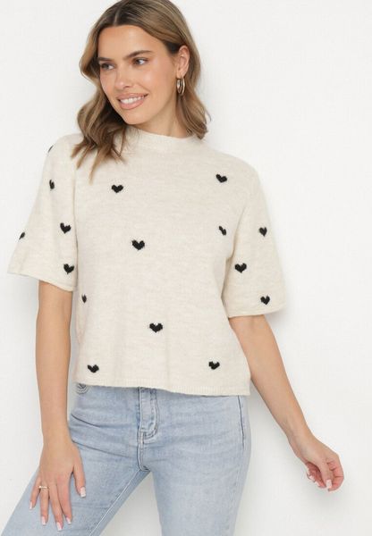 Jasnobeżowa Dzianinowa Bluzka z Wiskozą w Serduszka Zoltewia
