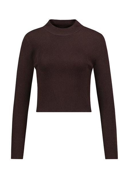– kołnierz: stójka- wzór splotu: ścisły- krój: cropped- look: jednokolorowy