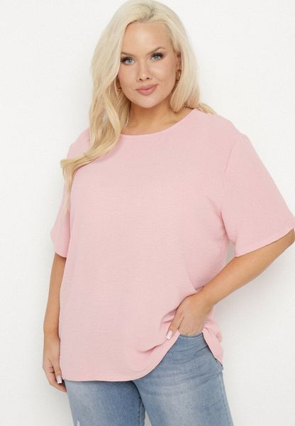 Różowa Klasyczna Bluzka z Krótkim Rękawem Nilbia