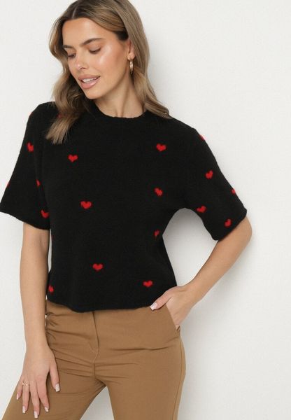 Czarna Dzianinowa Bluzka z Wiskozą w Serduszka Zoltewia