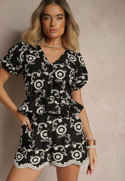 Czarna Bluzka z Bawełny Ozdobiona Haftem Talseli