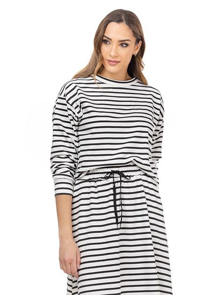 – dekolt: okrągły – krój: prosty – wzór: paski