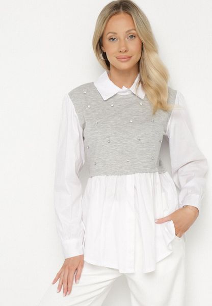 bluzki bez ramiączek bluzki z koszulowym kołnierzykiem bluzki z długim rękawem odzież damska born2be bluzki bez rękawów bluzki born2be bluzki ze sklepu born2be.pl odzież damska born2be.pl bluzki z klasycznym kołnierzykiem szare bluzki