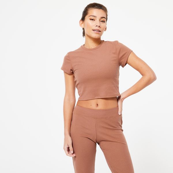 Koszulka z krótkim rękawem damska Gym & Pilates prążkowana