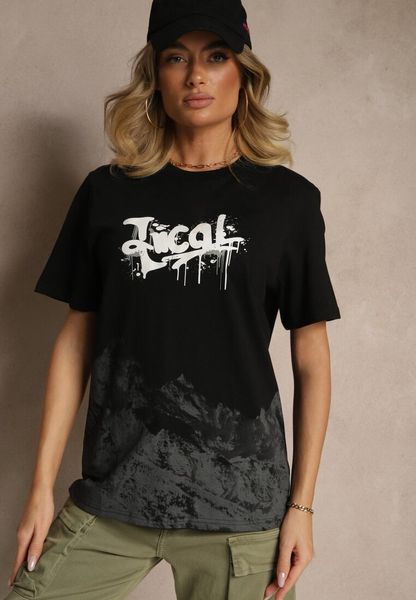 Czarna Bawełniana Koszulka Zdobiona Nadrukiem Tellravi