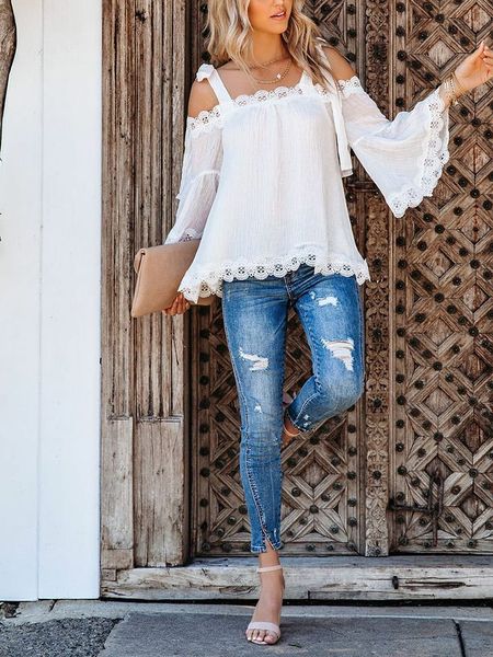 – dekolt: Carmen- ramiączka: do wiązania- detale: szydełkowana koronka- krój: luźny- look: jednokolorowyUwaga: Podczas wybierania odpowiedniego rozmiaru należy kierować się tabelą, widoczną na ostatnim zdjęciu.