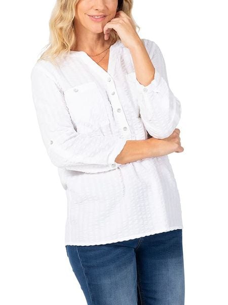 – dekolt: z rozcięciem- zapięcie: skrócona listwa guzikowa- kieszenie: na piersi- krój: prosty- look: jednokolorowy