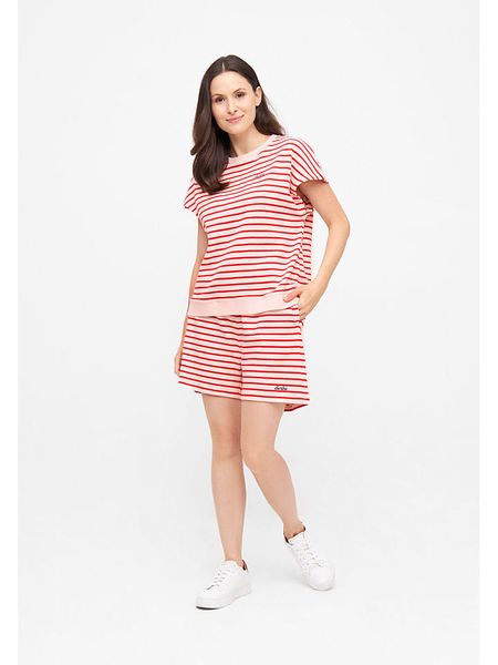 – czysta bawełna organiczna- dekolt: okrągły- krój rękawów: motylek- krój: prosty- wzór: paski- nadruk: logo