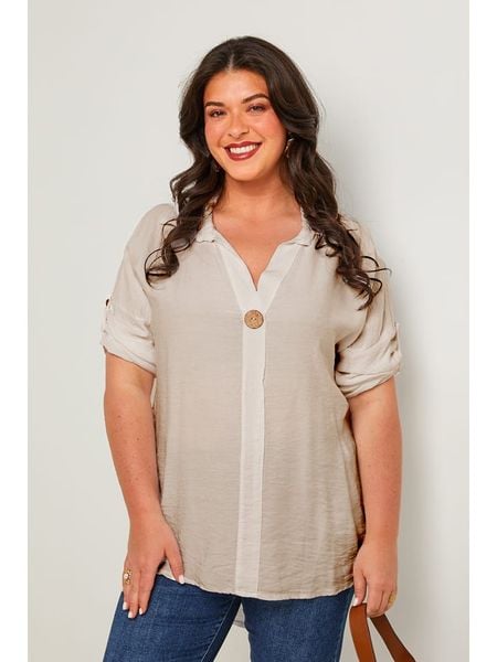 bluzki bez kołnierzyka odzież damska curvy lady bluzki curvy lady brązowe bluzki bluzki bez rękawów bluzki bez ramiączek odzież damska limango.pl bluzki z długim rękawem bluzki ze sklepu limango.pl