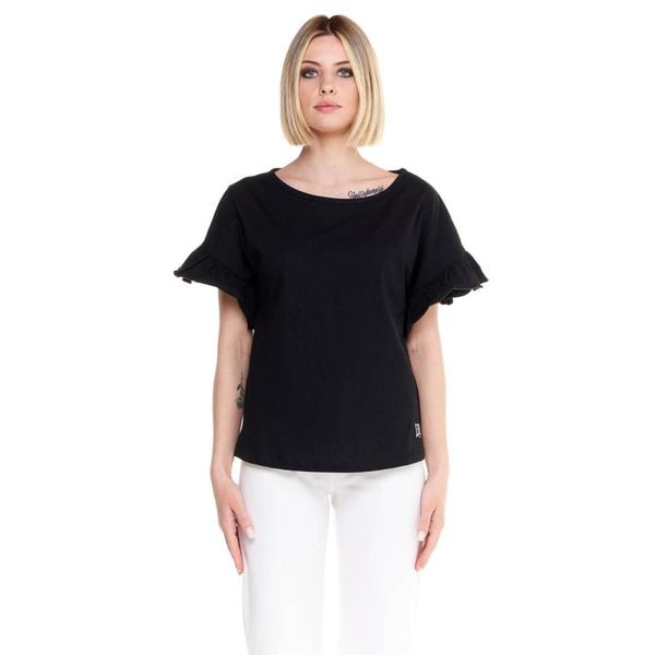 Błyszcząca damska koszulka z krótkim rękawem i falbaną