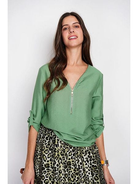 – z dodatkiem lnu- dekolt: V- detale: dekoracyjny zamek błyskawiczny- krój: prosty- look: jednokolorowyUwaga: Na metkach odzieży tej marki znajdują się rozmiary francuskie. Rozmiarówka została przez nas przeliczona. Podane do wyboru warianty rozmiarów odpowiadają standardowym europejskim rozmiarom konfekcji. Prosimy zapoznać się z zamieszczonym objaśnieniem rozmiarów.