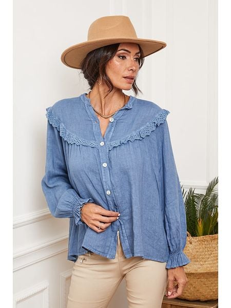 bluzki z okrągłym kołnierzem bluzki bez ramiączek bluzki la compagnie du lin bluzki bez kołnierzyka bluzki ze sklepu limango.pl bluzki bez rękawów odzież damska limango.pl niebieskie bluzki odzież damska la compagnie du lin bluzki z długim rękawem