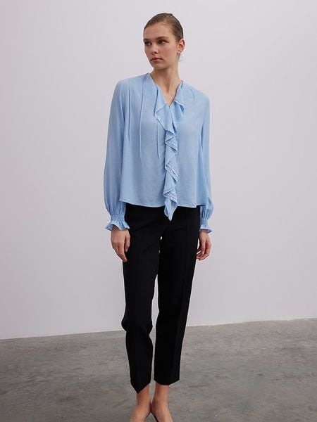 – czysta wiskoza- dekolt: V- krój rękawów: rozszerzany do dołu- detale: falbany- krój: prosty- look: jednokolorowyUwaga: Przy wyborze właściwego wariantu zaleca się korzystanie z tabeli rozmiarów.