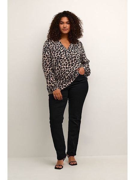 – dekolt: V- rękaw: bufiasty- zakończenie rękawów: guzik- krój: prosty- wzór: panterka