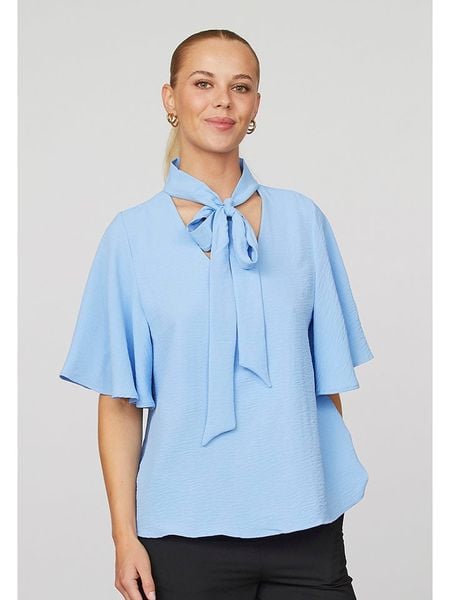 – z dodatkiem poliestru pochodzącego z recyklingu- kołnierzyk: szalowy- dekolt: V- krój rękawów: motylek- krój: luźny- look: jednokolorowy