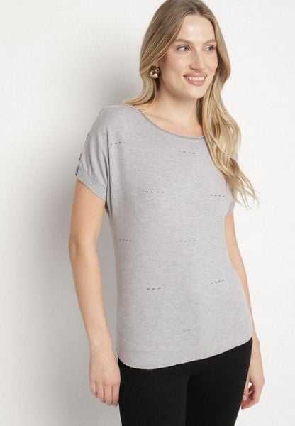 Szara Bluzka z Dzianiny Zdobiona Cyrkoniami Feninea