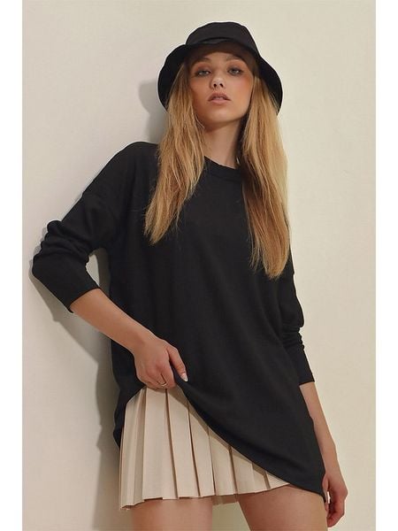 – z dodatkiem bawełny- dekolt: okrągły- krój rękawów: nietoperz- krój: oversized- dolny brzeg: z rozcięciem- look: jednokolorowy