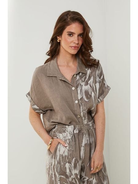 – czysty len- kołnierz: kent- zapięcie: listwa guzikowa- zakończenie rękawa: podwijane- krój: luźny- wzór: kwiatowy