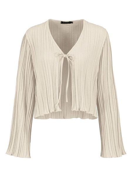– dekolt: V- zapięcie: wiązane tasiemki- krój: prosty- detale: plisy- look: jednokolorowy