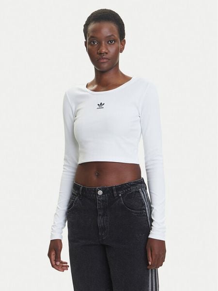 adidas Bluzka Essentials Ribbed JC9011 Biały Slim Fit