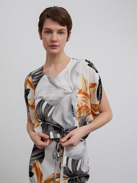 – czysta wiskoza- dekolt: V- krój rękawów: nietoperz- długość rękawa: półdługi- krój: luźny- wzór: na całościUwaga: Przy wyborze właściwego wariantu zaleca się korzystanie z tabeli rozmiarów.