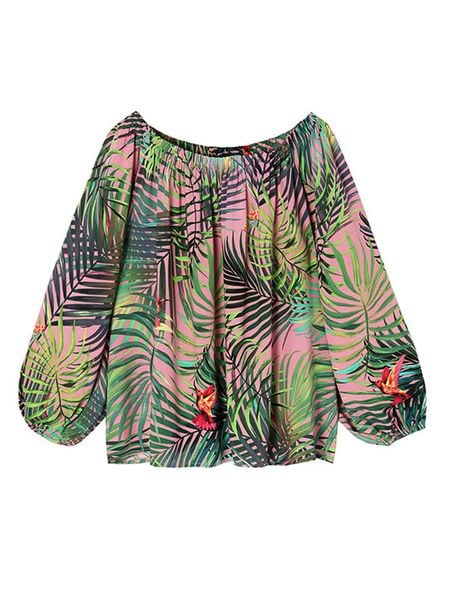 – czysta wiskoza- dekolt: Carmen- rękaw: bufiasty- zakończenie rękawów: elastyczne- krój: luźny- wzór: na całości