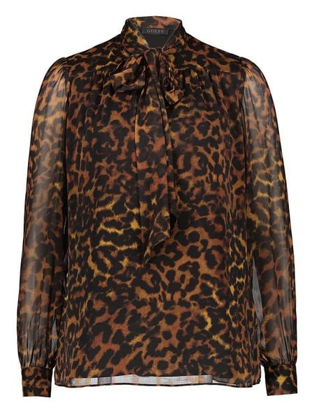 – kołnierz: stójka- zakończenie rękawów: mankiet na guzik- detale: ozdobne wiązanie- krój: prosty- wzór: panterka
