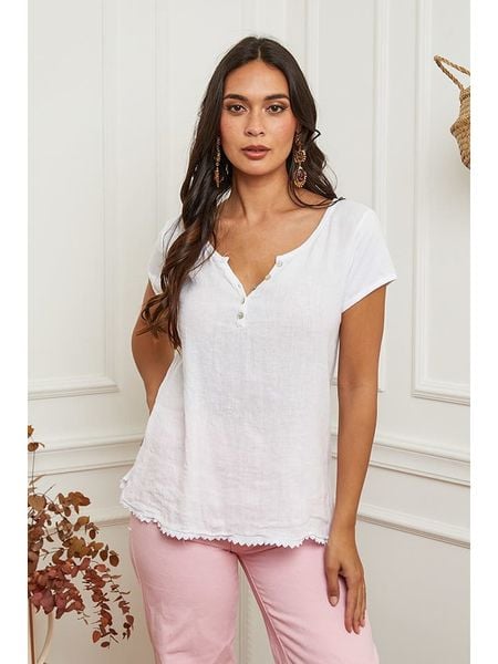 – czysty len- dekolt: V- zapięcie: listwa guzikowa- krój: prosty- look: jednokolorowy