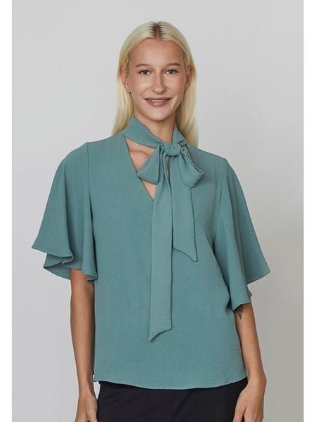 – z dodatkiem poliestru pochodzącego z recyklingu- kołnierzyk: szalowy- dekolt: V- krój rękawów: motylek- krój: luźny- look: jednokolorowy