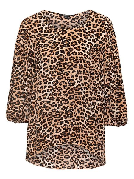 – czysta wiskoza- dekolt: okrągły- zakończenie rękawów: elastyczne- krój: prosty- wzór: panterka
