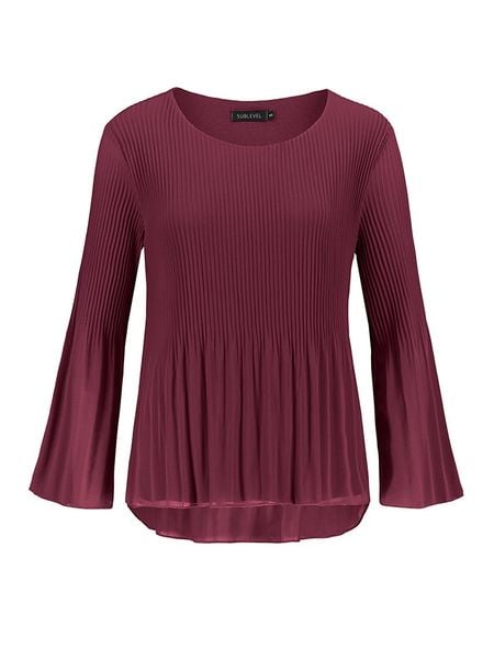 – dekolt: okrągły- krój rękawów: rozszerzany do dołu- detale: plisy- krój: prosty- look: jednokolorowy