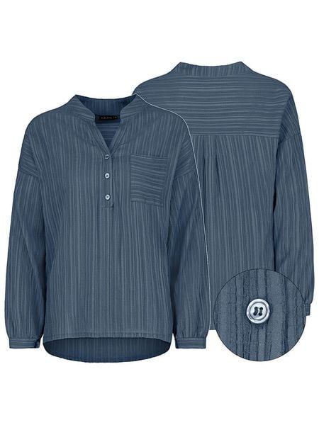 – kołnierz: stójka- dekolt: V- zapięcie: skrócona listwa guzikowa- zakończenie rękawów: guzik- kieszenie: na piersi- dolny brzeg: zaokrąglony- krój: prosty- wzór: paski