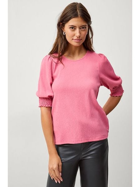 – dekolt: okrągły- rękaw: bufiasty- długość rękawa: półdługi- krój: prosty- look: jednokolorowy