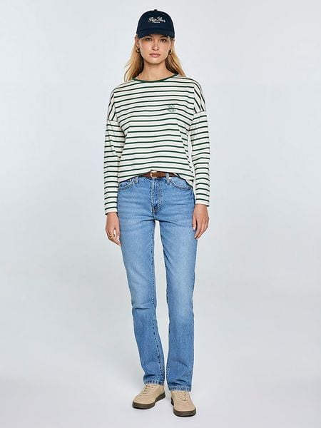 – czysta bawełna- dekolt: okrągły- detale: haft z logo- krój: prosty- wzór: paski