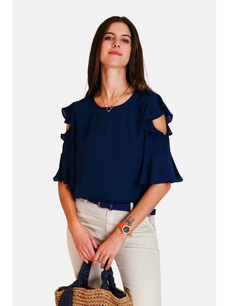 bluzki assuili bluzki z okrągłym kołnierzem bluzki bez rękawów bluzki bez ramiączek bluzki ze sklepu limango.pl niebieskie bluzki bluzki z długim rękawem bluzki bez kołnierzyka odzież damska limango.pl odzież damska assuili