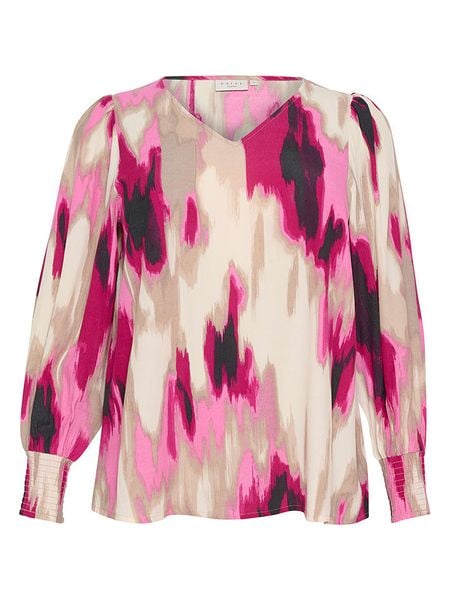 – czysta wiskoza- dekolt: V- rękaw: bufiasty- zakończenie rękawów: marszczenie- krój: luźny- wzór: na całościUwaga: Przy wyborze właściwego wariantu zaleca się korzystanie z tabeli rozmiarów.