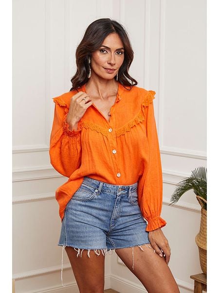 bluzki bez rękawów bluzki z okrągłym kołnierzem bluzki bez kołnierzyka bluzki ze sklepu limango.pl odzież damska la compagnie du lin bluzki z długim rękawem pomarańczowe bluzki odzież damska limango.pl bluzki la compagnie du lin bluzki bez ramiączek
