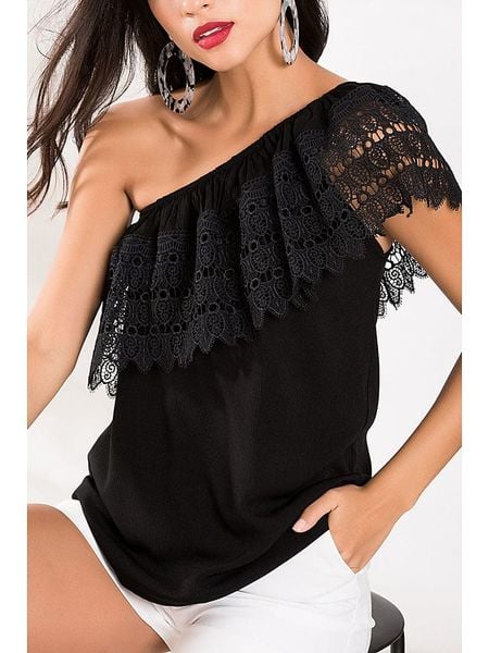 – krój rękawów: na jedno ramię- krój: prosty- detale: szydełkowana koronka- look: jednokolorowyUwaga: Przy wyborze właściwego wariantu zaleca się korzystanie z tabeli rozmiarów.